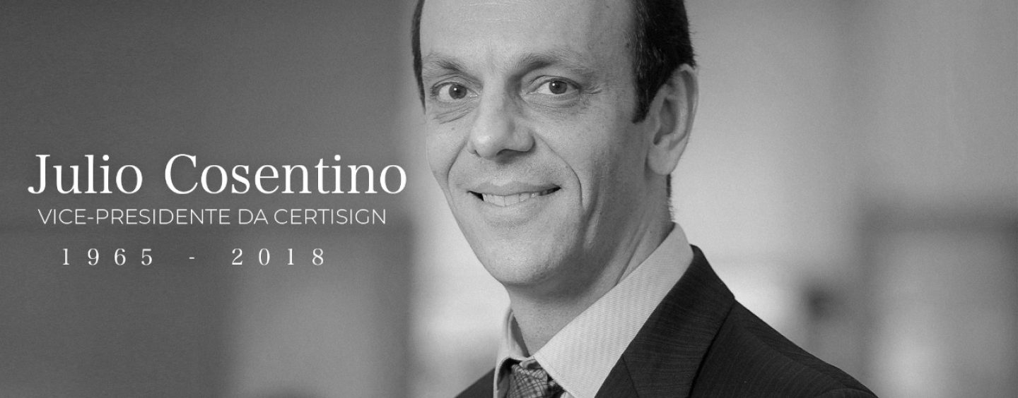“Registramos consternados o passamento precoce de Julio Cosentino, co-fundador e Vice-Presidente da Certisign e um dos pioneiros da ICP-Brasil. Carismático, de espírito altamente conciliador e de grande capacidade de diálogo, Julio deixa grande legado à empresa, ao setor de certificação digital e aos que conviviam com ele. As Autoridades Certificadoras certamente sentirão a falta deste brilhante e competente profissional, mas têm a certeza que a Certisign, empresa líder do setor, dará continuidade aos trabalhos de Julio. Lamentamos a perda e solidarizamos com os familiares, amigos e colaboradores da Certisign.” ACs BR, Notarial, SINCOR, SINCOR Rio e FENACOR