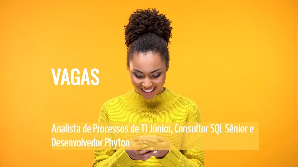 Oportunidades são voltadas a profissionais especializados para funções como Analista de Processos de TI Júnior, Consultor SQL Sênior e Desenvolvedor Phyton