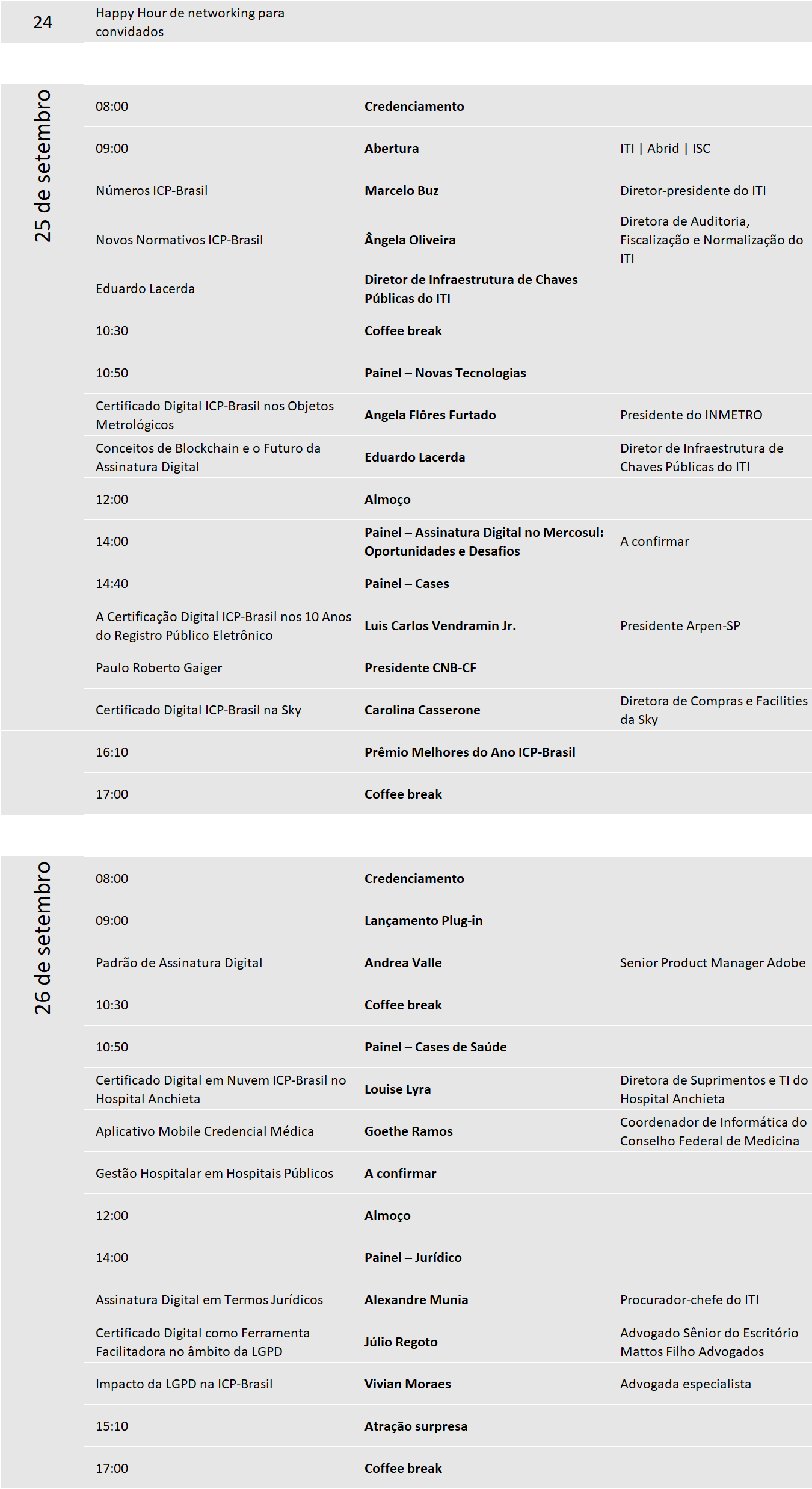 A programação do evento será divulgada muito em breve, mas pelas prévias que já tivemos será um CertForum com muita informação sobre o mercado, sobre normas e regulações, vai tratar do uso de tecnologias adjacentes a certificação digital e novos casos de sucesso serão apresentados.