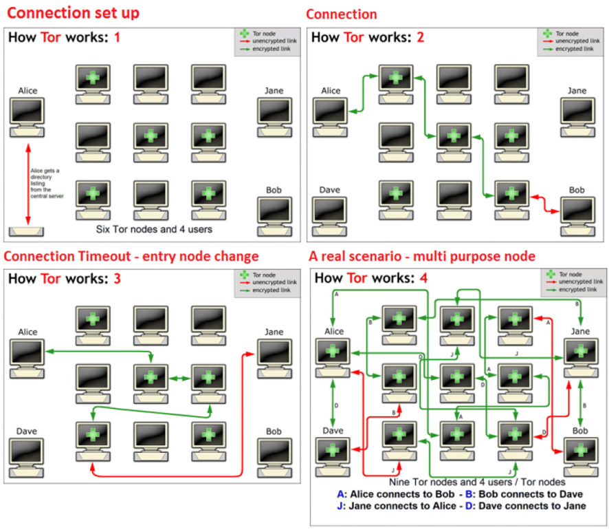 Ao acessar um site normalmente, seu computador se conecta a um servidor que consegue identificar o IP; com o Tor isso não acontece, pois, antes que sua requisição chegue ao servidor, entra em cena uma rede anônima de computadores que fazem pontes criptografadas até o site desejado. Por isso, é possível identificar o IP que chegou ao destinatário, mas não a máquina anterior, nem a anterior, nem a anterior etc. Chegar no usuário, então, é praticamente impossível.