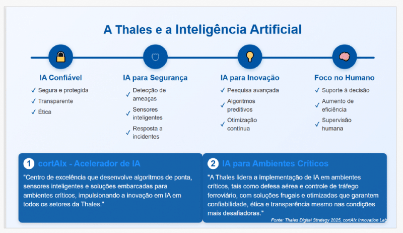 Um exemplo é o CortAIx, acelerador de IA da Thales voltado ao desenvolvimento de algoritmos avançados e soluções embarcadas para setores críticos como Defesa.