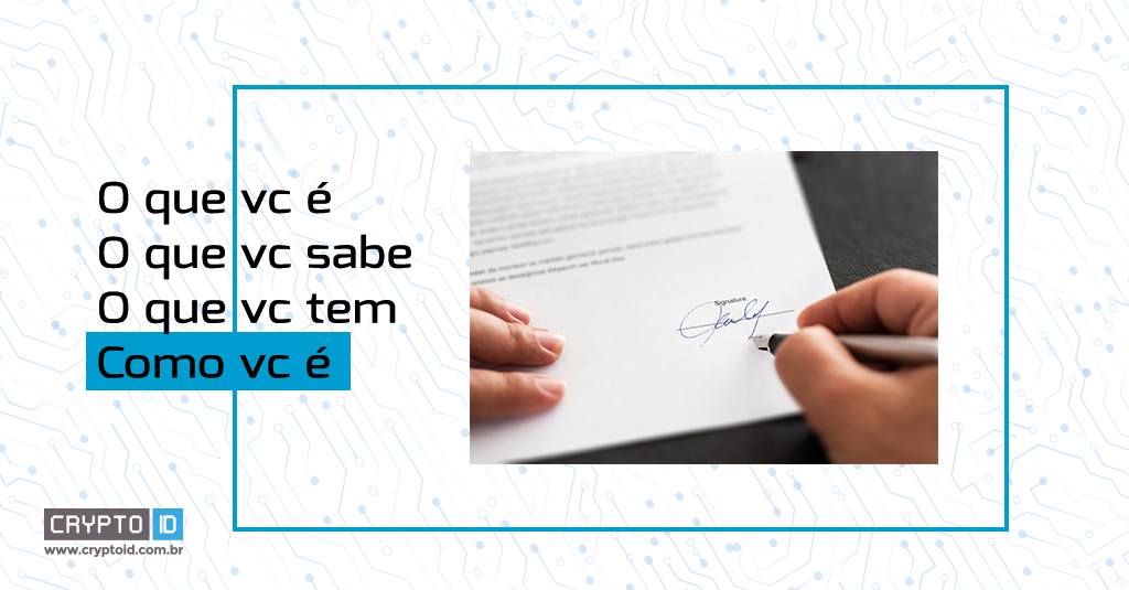 Essa modalidade de segurança tem se tonado conhecida como biometria comportamental. Ao capturar a forma como o usuário tipicamente emprega seu aparelho por um período de tempo, os algoritmos da biometria comportamental podem definir um tipo de “rastro”. Se as ações do usuário correspondem a esse “rastro” então há uma alta probabilidade de que as ações sejam legítimas, não havendo a necessidade de interferir e comprometer a experiência do usuário. Entretanto, uma súbita mudança no comportamento pode indicar que algo errado está ocorrendo. O banco pode então parar a operação e requisitar uma verificação adicional.