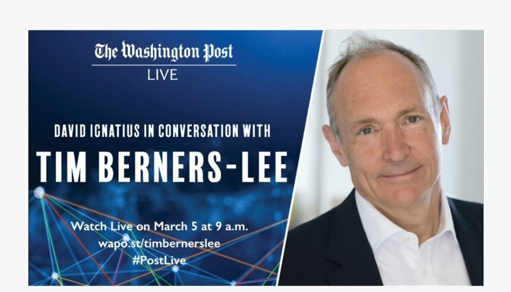 Na terça-feira, 5 de março, o colunista do Washington Post David Ignatius vai se sentar para uma entrevista exclusiva com Sir Tim Berners-Lee.