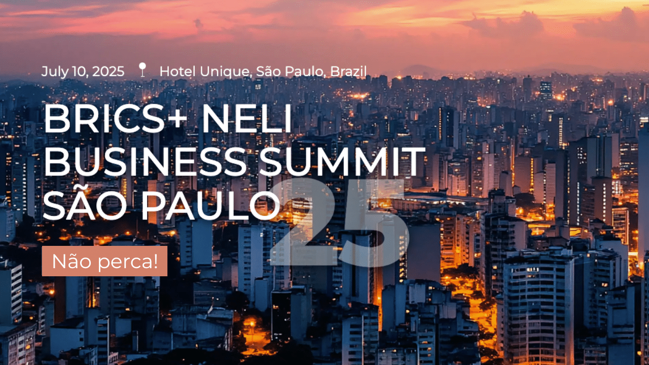 O BRICS+ NeLi Business Summit São Paulo 2025 reunirá nesta quinta-feira (10) mais de 250 líderes dos setores jurídico, empresarial e governamental no Hotel Unique, em São Paulo (SP). Organizado pelo BRICS+ New Economy & Legal Infrastructure Center (NeLi), o evento busca promover cooperação internacional, inovação legal e integração de investimentos entre os países do BRICS+. Interessados devem se inscrever pelo site, com aprovação sujeita à validação da organização.