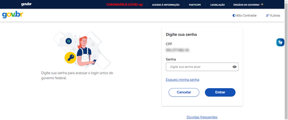 - Digite a senha cadastrada e clique no botão Entrar;
