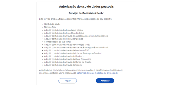 - Leia a Autorização de uso de dados pessoais e se de acordo, clique em Autorizar;