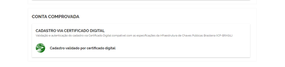 - Selecione a opção Cadastro validado por certificado digital;