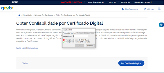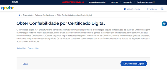 - Clique em Ler Certificado Digital;
