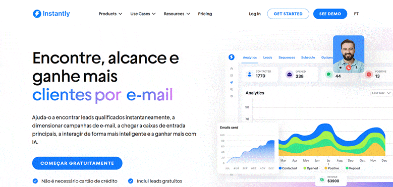 O Instantly.ai se diferencia pelo uso intensivo de inteligência artificial. Funções principais: