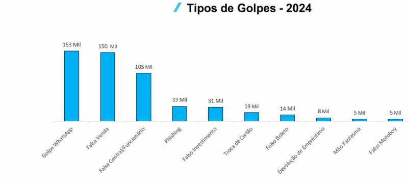 Em um mundo cada vez mais digital e interconectado, a criatividade dos criminosos não conhece limites. A cada dia, novas tentativas de golpes surgem, visando enganar e prejudicar a população. O golpe do WhatsApp, das falsas vendas e da falsa central/falso funcionário de banco são as três abordagens mais comunicadas por clientes em 2024 às instituições associadas e que foram repassadas à Febraban (Federação Brasileira de Bancos).